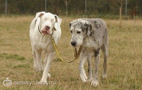 Собака ведет своего слепого друга за поводок… Вот она дружба.