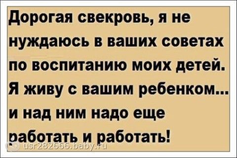 а я очень даже прислушиваюсь к свекрови, она умная мудрая женщина, у меня мама далеко, а свекровь рядом всегда к ней бегу за помощью! спасибо ей большое!