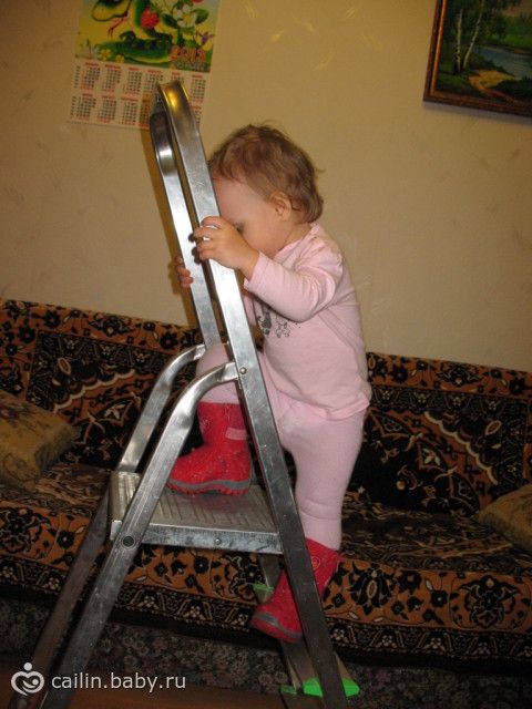 Так же Нютка научилась слезать со стремянки (залезать давно уже умеет).