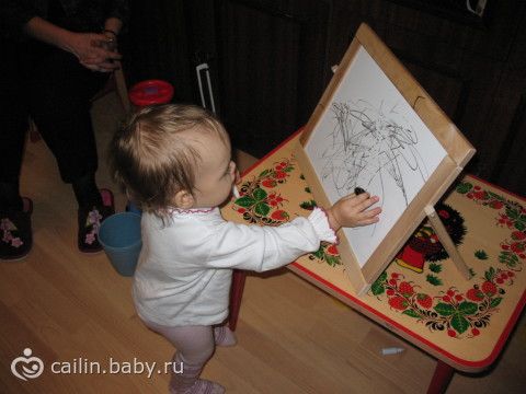 Любим читать книжки с картинками и смотреть фотоальбом, называем разные вещи, учим новые слова. Правда, слова все очень примитивные, несмотря на мои усилия, вместо «киса, утя и т.п.» упорно говорит «мя, ка-ка» и в таком духе.