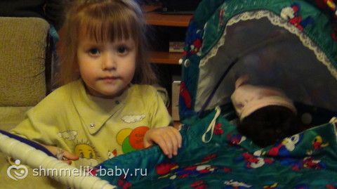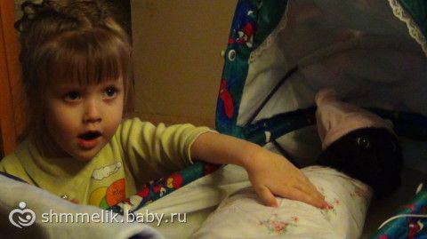 Наш кот очень терпелив, позволяет себя запеленать и покатать в коляске минут 15. Это любимая дочкина игра — Кот-младенец. Одно только Лизу расстраивает: Кеша наотрез отказывается от пустушки и бутылочки с соской)))