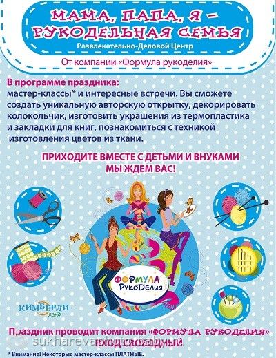 В развлекательно-деловом центре Кимберли Лэнд в воскресенье будет царить творческая атмосфера. Там пройдет праздник «Мама, папа, я – рукодельная семья».