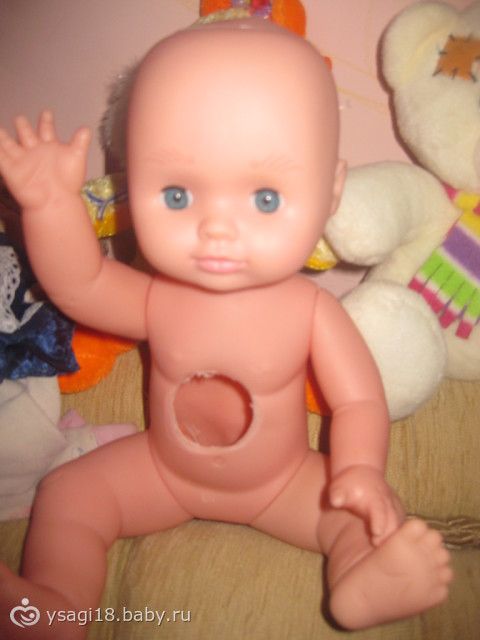 Настины куклы все голые. А у этой еще и пищалку вытащила. Сегодня подходит к папе, показывает на дырку и говорит: «Где?»