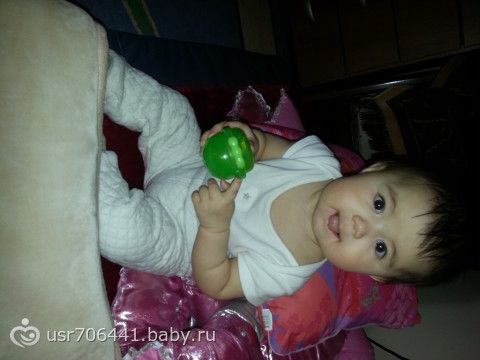 Мое солнышко ясное, сегодня 8 месяцев нам!!! Весит 9400гр, ростом 72 см, умеет сама ходить на горшок уже, рычит и пугает всех, повторяет букву«С», сама встает и стоит держась за опору и каждый день радует нас своим присутствием!!! Молю Аллаха, чтобы выросла здоровой, никогда не болела! Очень очень люблю свою Айзерешку!