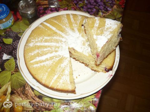 Форму смазать маслом, присыпать манкой и вылить тесто. Сверху выложить размороженные (или свежие)ягоды, обвалянные в сахарной пудре.