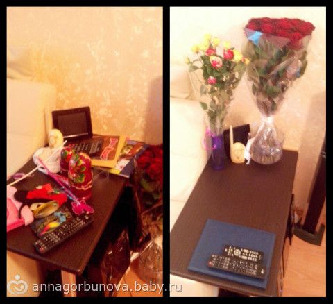 Итак, мы с мужем заключили сделку. Он загружает белье в стиральную машину, а затем в сушилку, а после приносит корзину с чистым бельем наверх и ставит у меня под носом (по моей просьбе). Он ставит ее на скамеечку, где я держу свой лептоп. Принцип «сделай это сейчас» в действии.