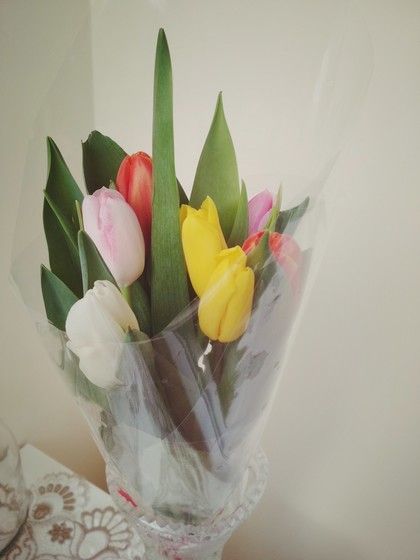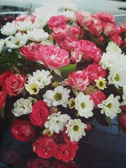 По дороге купили цветочки, очередь в цветочном была неимоверная… я схитрила, попросила пропустить девушку в честь праздника без очереди, мужчины не отказали?