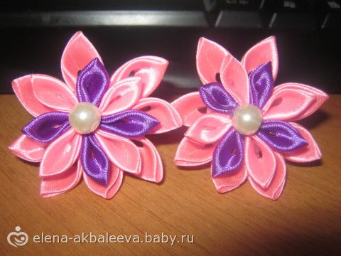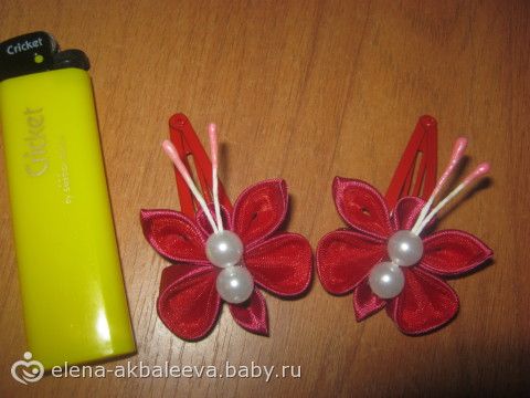 привет девочки!!! занялась канзашами украшениями из атласных лент, вот вам фоточки оцените))))если что делаю на заказ может кому понравится, это резиночки и заколки клик-клак.