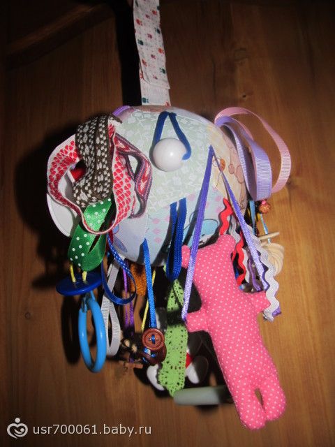Крепится он на ленточке с липучкой, то есть можно, например, на кроватку повесить или ещё куда)