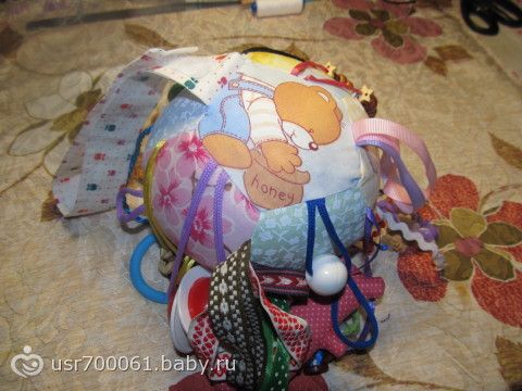 В одном блоге проходил совместный пошив развивающего мячика, ну и я в сторонке не осталась)) Может уже сынуля и большеват для такой штуки, но сегодня бегал с ней целый день))
