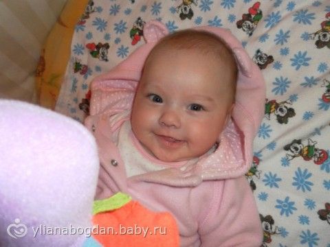 Вот вроде только мучалась со схватками, только родила ее, а сегодня нам уже 4 месяца)Я так счастлива, что у меня есть мое чадо! С ее лица никогда не сходит улыбка, она хохочет, везжит, пищит, это так радует нас!!! С 4 месяцами, наша доченька**