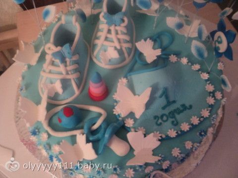 конечно само качество фото… ужасное… в живую торт обалденный… по всему торту отпечатки бабочек… даже на пинетках… как будто ткань натянули, а не мастику… вообщем нам понравилось)))
