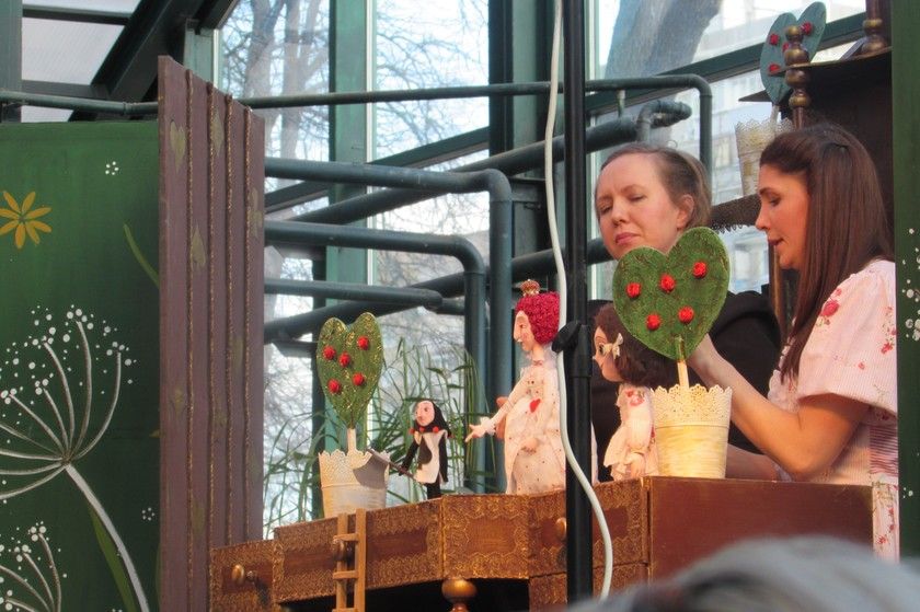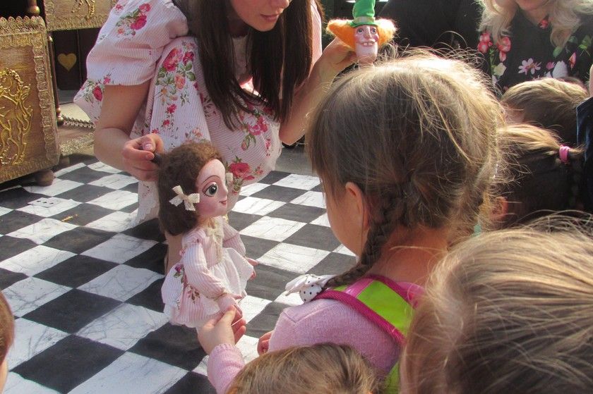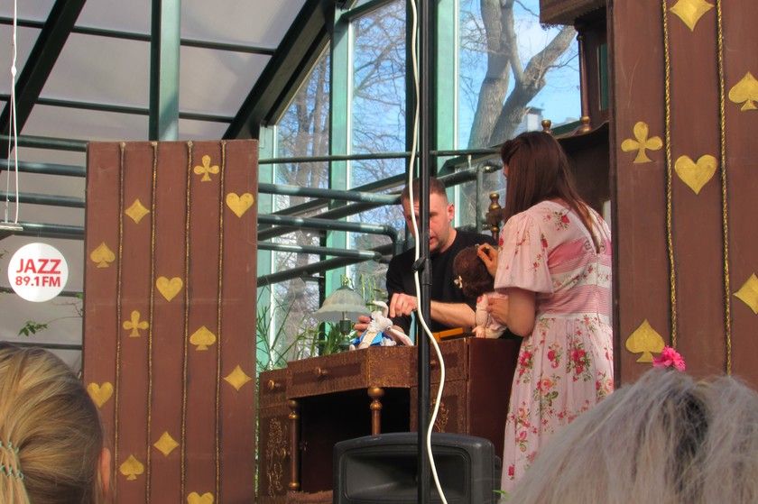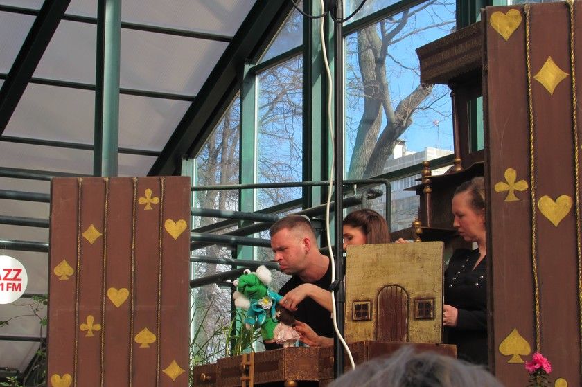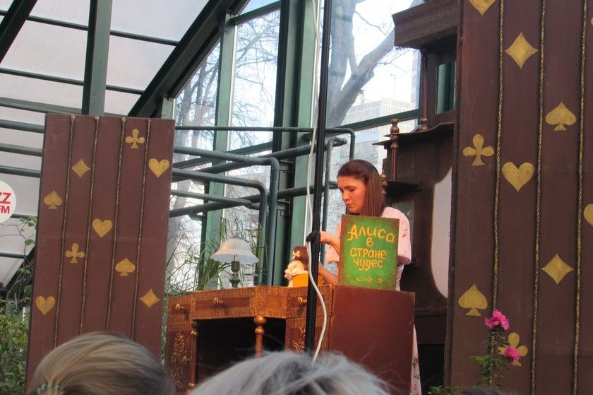 В субботу у нас с девочками был очень длинный день. Начался он с поездки на спектакль «Алиса в Стране чудес» в «Аптекарском огороде. С марта по апрель здесь проходит фестиваль детских спектаклей. „Алиса“ была кукольным спектаклем с разными видами кукол и элементами теневого и драматического театров.