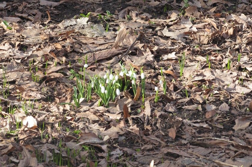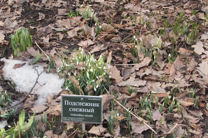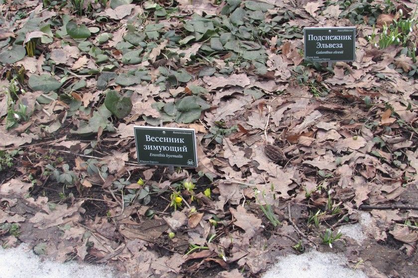 Но подснежники мы все же нашли, оказывается, недалеко от входа, в „Саду теневых растений“. Сейчас этот сад самый растаявший, и вот что там мы увидели.