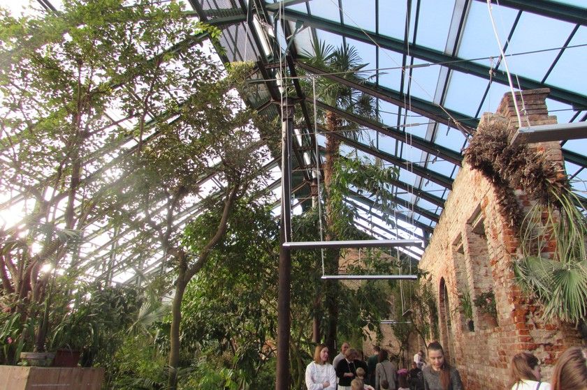 Мы прошли в оранжерею, где устроена сцена и зрительные места. И конечно, много тропических растений.