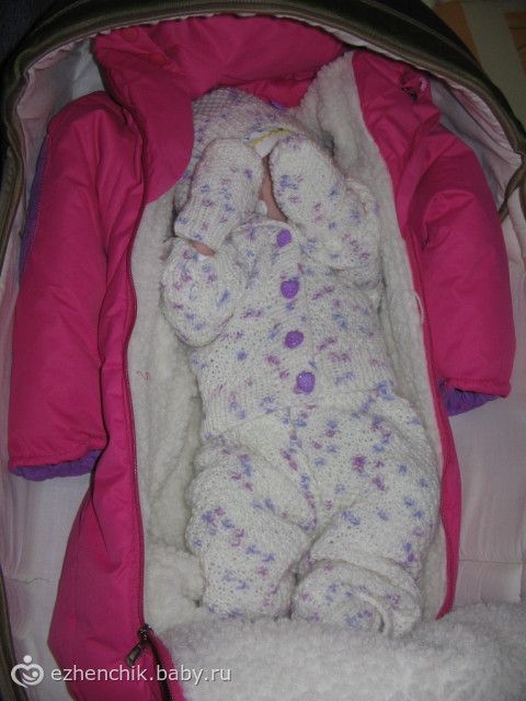 я одевала — слипик, вязаный костюм или тёплый прогулочный слип, чепчик, шапка. в переноску в конверт, в коляску.