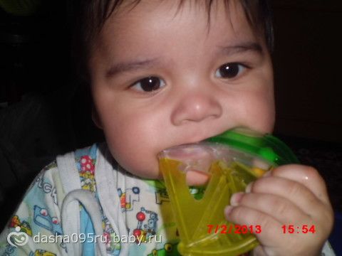 не не капризничает:-) но еще не понимает зачем он нужен:-)