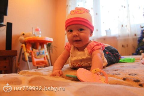 лежим на вытянутых ручках пытаясь ползти!!! любим позировать и наряжаться)нашли свои ножки и багополучно тянем их в рот))
