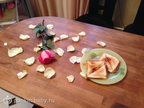 Я встала завтракать, а на столе сюрпрайз… сэндвичница(я давно хотела) чай и готовые бутеры. И Цветочек… не ожидала даже, так приятно. )))