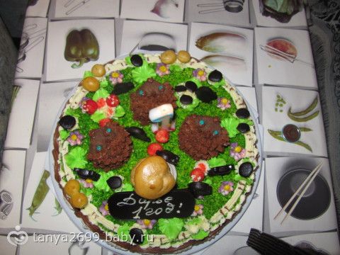 А тортк сами готовили? На епрвое празднование большой ежик а потом много маленьких? Очень красиво
