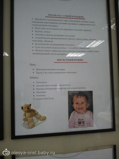 Для Себя: Тапочки, Две ночные рубашки, Халат, Кружка, Ложка, Тарелка, Воду без газа, Прокладки послеродовые ( у меня ушло 2.5 пачки, у когото меньше), Трусики под прокладки послеродовые ( специальные в аптекахпродаются) 3-4шт, Бюзгалтер для кормления ( размер подбирай побольше, молокопоявится может маленький оказаться если впритык возьмешь), Диски для груди однупачку, Мыло, щетку, пасту, шампунь, Возьми обязательно крем Бипантен Плюс, чтоб соски мазать, чтоб в дальнейшем предотвратить трещины, его даже смывать ненадо.