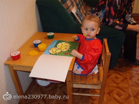 Еще попробовали рисовать пальчиковыми красками. Итог: Убрала их подальше))))