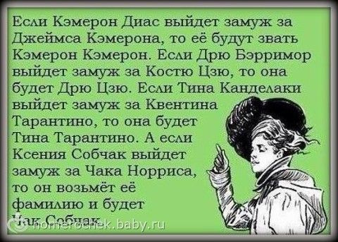 а еще была у меня коллега по фамилии Коняшкина. кому ни представлялась — вечно ржали (а представлялась она часто, работа с клиентами). а оказывается, у нее девичья — вполне нормальная фамилия, нейтральная, но свёкор перед свадьбой сказал «что это за жена, которая стесняется брать фамилию мужа?». вот, пришлось ей.