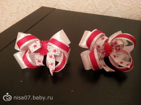 А вот мои первые бантики, тут я правда применила джакардовые ленты а не репсовые, поэтому решила дождаться репсовые) с ними надеюсь будут еще ярче выглялеть)