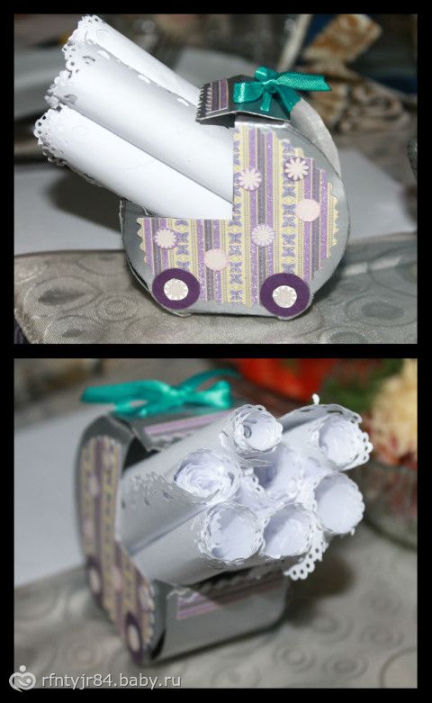 колясочку я сделала сама, на записках написали: имена, вес-рост и предположили дату родов