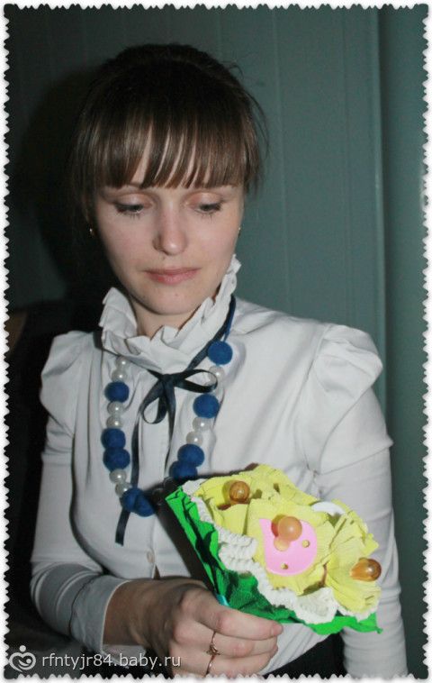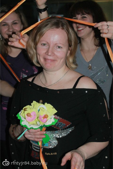 а в конце был букет из сосок. Надо заметить, что у нас в группе существует традиция: мы передаем (ну это было не специально) эстафету беременности. Сейчас все сделали воочию)))