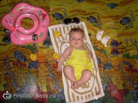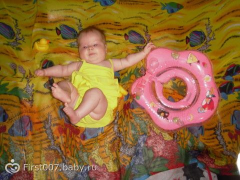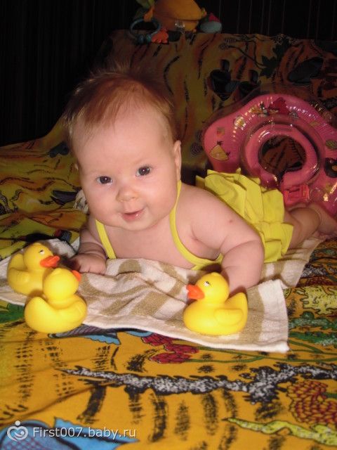 Вчера Хомичине нашей любимой было 3 месяца))) Получила в подарок Ананас Тини Лав))) Весит наша куколка 5 700 (по моим ощущениям минимум 7 кг))), рост 59 см. Умеет держать погремушки, держать голову лежа на животике и на ручках у мамы или папы. Визжит от восторга, все тянет в рот. Любит купаться, кушать (ну это вне конкуренции), гулять.