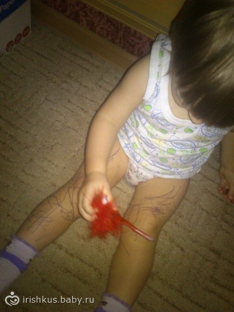 наша тоже юный художник, и ещё танцор, вот и развлекаемся) уже почти все обои раскрашены, там где можно достать, все блокнотики, альбомчики, раскраски и.т.д. свои руки и ноги само собой тоже))
