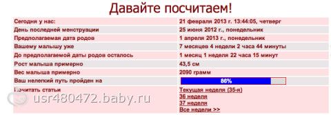 Мне тоже нравится этот сайт, тока вот с телефона не могу сюда данные вставить. В общем путь мой пройден на 82%, а роды 13 апреля))