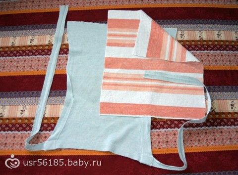 Прямоугольник из трикотажного полотна с двумя завязками и впитывающая часть из старого махрового полотенца. Что может быть проще, подумала я? Такой подгузник мягкий и удобный. Из него ничего не вываливается, т.к. он хорошо облегает ножки. Его легко шить, стирать и сушить.