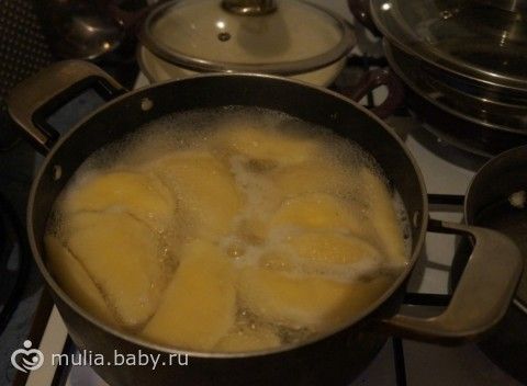 кинула в воду, сварились очень быстро, не развалились, тесто очень нежное и мягкое, нам с дочей понравилось)))