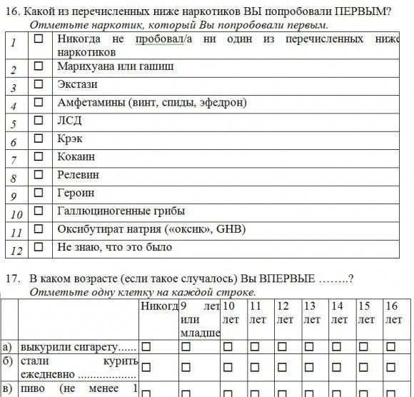 У 10-летних школьников собирались спрашивать, в каком возрасте они начали употреблять различные наркотические вещества, приводя их подробный список.