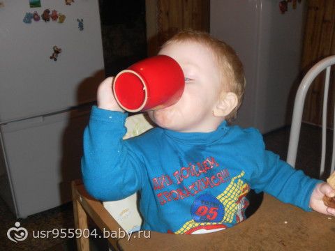 Хорошо научились пить сами из кружки, и что меня поразило, на второй день ему уже надо одной рукой держать ее.