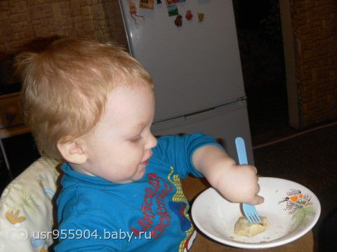 Вилкой научился хорошо сам кушать, а вот ложко еще никак толком не получается, все вываливается.