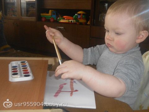 Пытались рисовать кисточкой и красками, надолго его не хватило