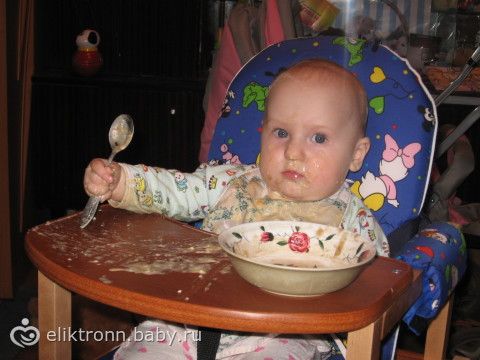 полностью самостоятельно с 1,2г обе. С самого начала прикорма (с 4 мес) ложку в руку давала, сама в это время другой ложкой кормила, месяцев с 8 уже они пытались в рот себе что-нибудь ложкой добыть более-менее успешно. Но очень грязно вокруг было.