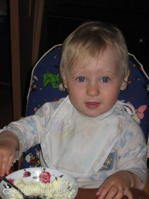 вот нам год и восемь почти, уже практически сам есть, творожок точно сам, а вот с супом беда еще)))) вилкой сам давно, разумеется под моим контролем