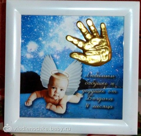 это прекрасный и запоминающийся подарок молодой семье, в которой только что появилось долгожданное чудо – их малыш. Непременно обрадует такой трогательный сюрприз бабушку и дедушку, ведь теперь их обожаемый внучок будет всегда рядом.