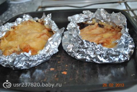 Достала мясо, хорошо не успело замерзнуть. Поставила мясо в духовку, стала Ярослава собирать папе обед нести)))
