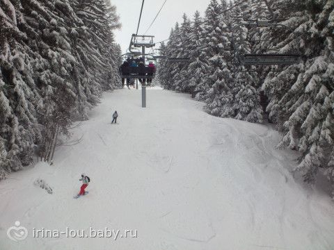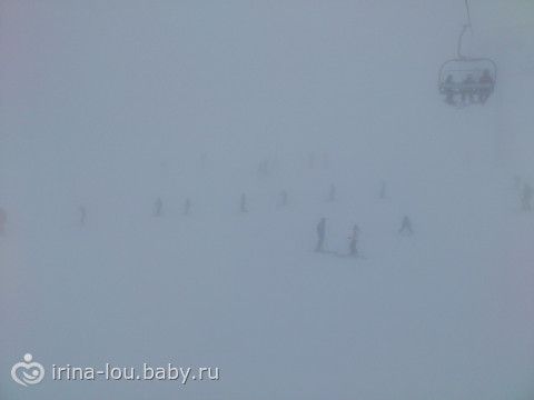 Сами склоны для катания разнообразны. От агрессивных крутых трасс с трамплинами до практически прогулочных среди снежных елей или по кулуарам и пухляку. Всевозможные подъемники и огромное количество детей, которые, как маленькие реактивные самолетики обгоняют тебя со всех сторон и бесстрашно летят вниз. Периодически свет так рассеивается, что становится абсолютно не видно теней. Ни кочек, ни ямок – одно белое марево (в очках желтоватое) и тогда все низко пригибаются, всматриваясь в ямки, кочки, повороты и боясь не заметить начавшийся крутой спуск. Или наплывает облако (такое правда было лишь один день) и тогда не видно вообще ничего, как в густом-густом тумане все медленно едут, всматриваясь вперед. А видно только метров на 5. Ну а в целом катания прошли динамично, насыщенно и очень ощутимо во всех мышцах)))