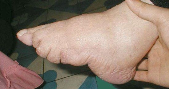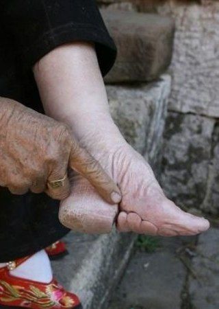 Для китайских мужчин деформированная особым образом женская ступня многие тысячелетия является эротическим органом. Деформация достигалась с помощью специального перевязывания ступней девочек, когда им исполнялось пять лет. В результате долгих и мучительных пыток получалось что-то такое, как на картинках ниже.