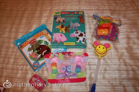 это для Сони. Анечка — пазл с Винни Пухом супер! У нас как раз Винни любимый герой, именно советский мультик смотрим. Пазлы объемные тоже шикарная штука, я даже не видела такого! Палочка мигающая сразу дочке приглянулась, сортер сидят сейчас с дедом собирают — довольны оба! А резиночки тоже очень в тему, нам наши все уже надоели, а волосики длинные уже