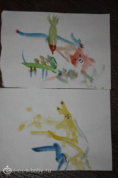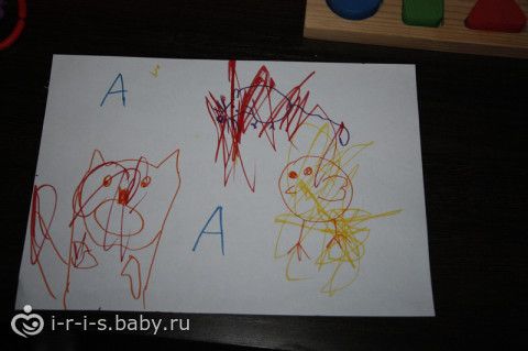 А так мы теперь рисуем — Арина говорит кого она рисует, а я лорисовываю глазки, носики и т.п., чтобы было похоже.