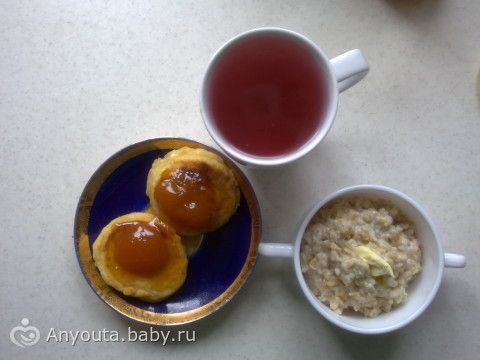 Чай каркаде, каша овсяная, 2 сырника с вареньем.