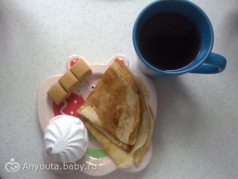 З. Домашний «Чудо творожок» с вишней и бананом. Кофе с молоком, ирис.