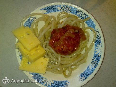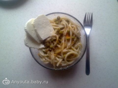 Макароны, сыр, салат консервированный.